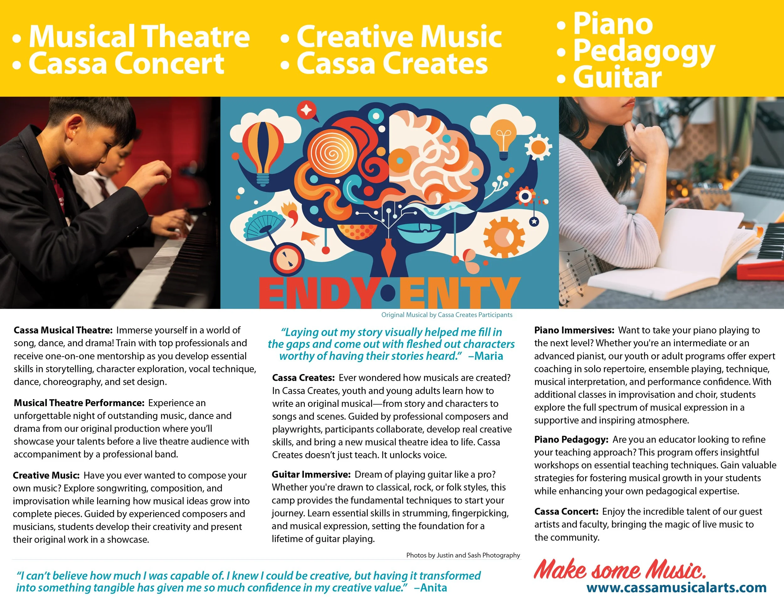 If you’re looking for an inspiring and enriching way to spend your summer, Cassa Musical Arts has an exciting lineup of programs designed for students, adults, and teachers of all levels.